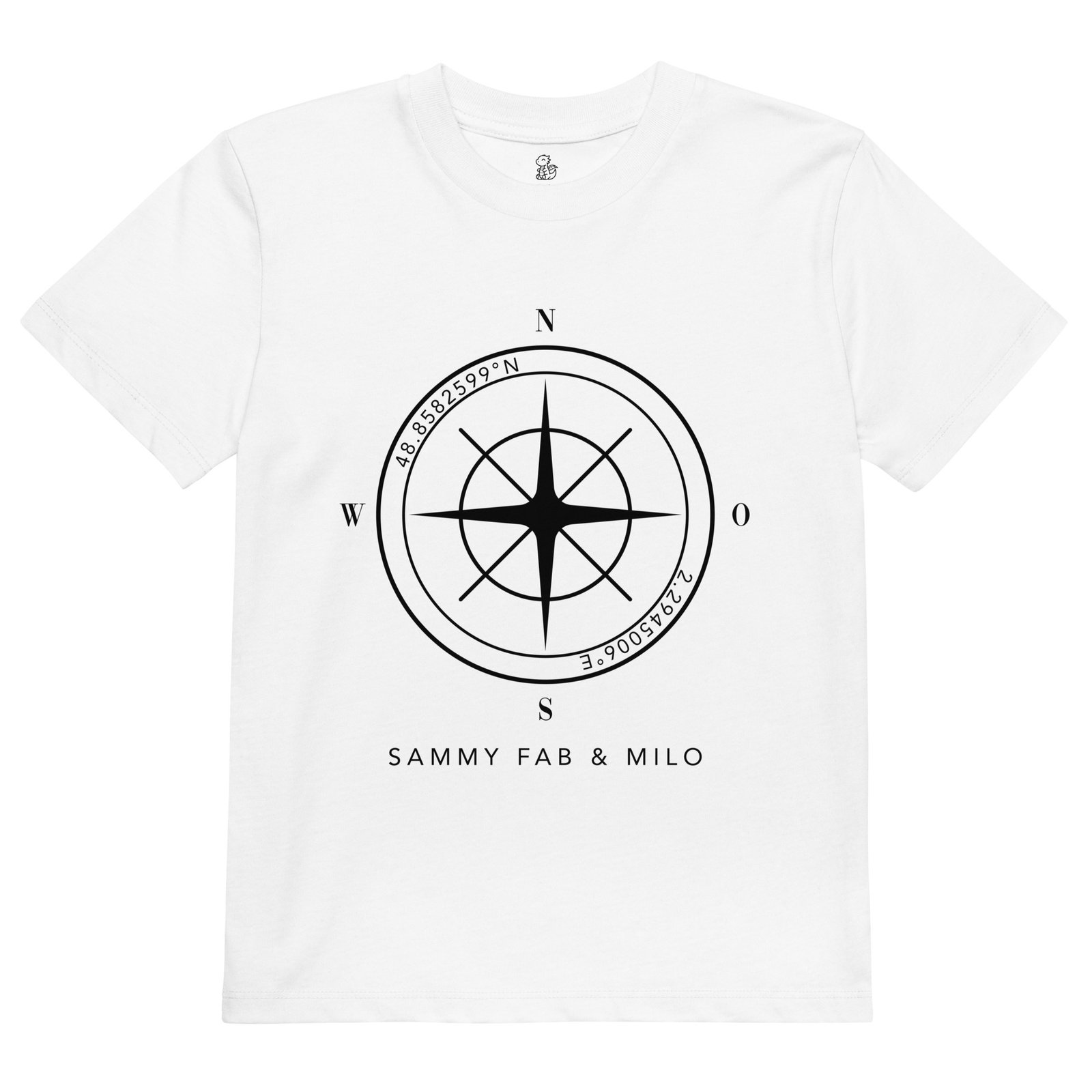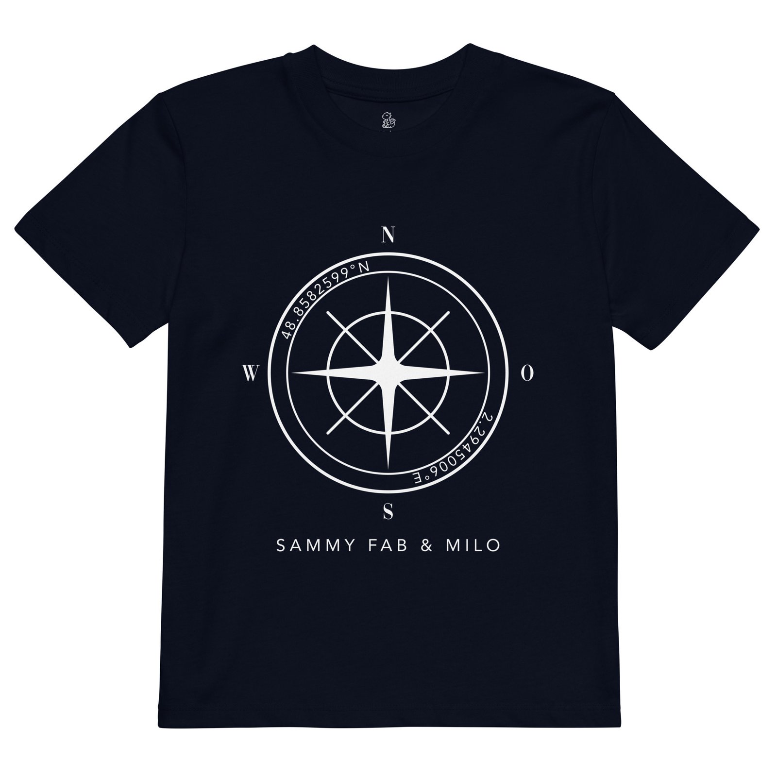 T-Shirt für Kinder Bio-Baumwoll Kompass Koordinaten Familie/Liebelingsort Namen